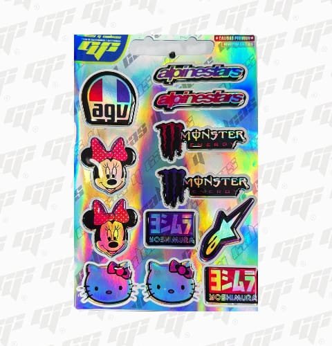 Las calcomanías decorativas multimarca screen tornasol resinadas están diseñadas para brindar un acabado premium y llamativo, ideal para personalizar motocicletas, cascos y accesorios. Su efecto tornasol cambia de tonalidad según la luz, destacando el diseño y aportando un estilo único.
